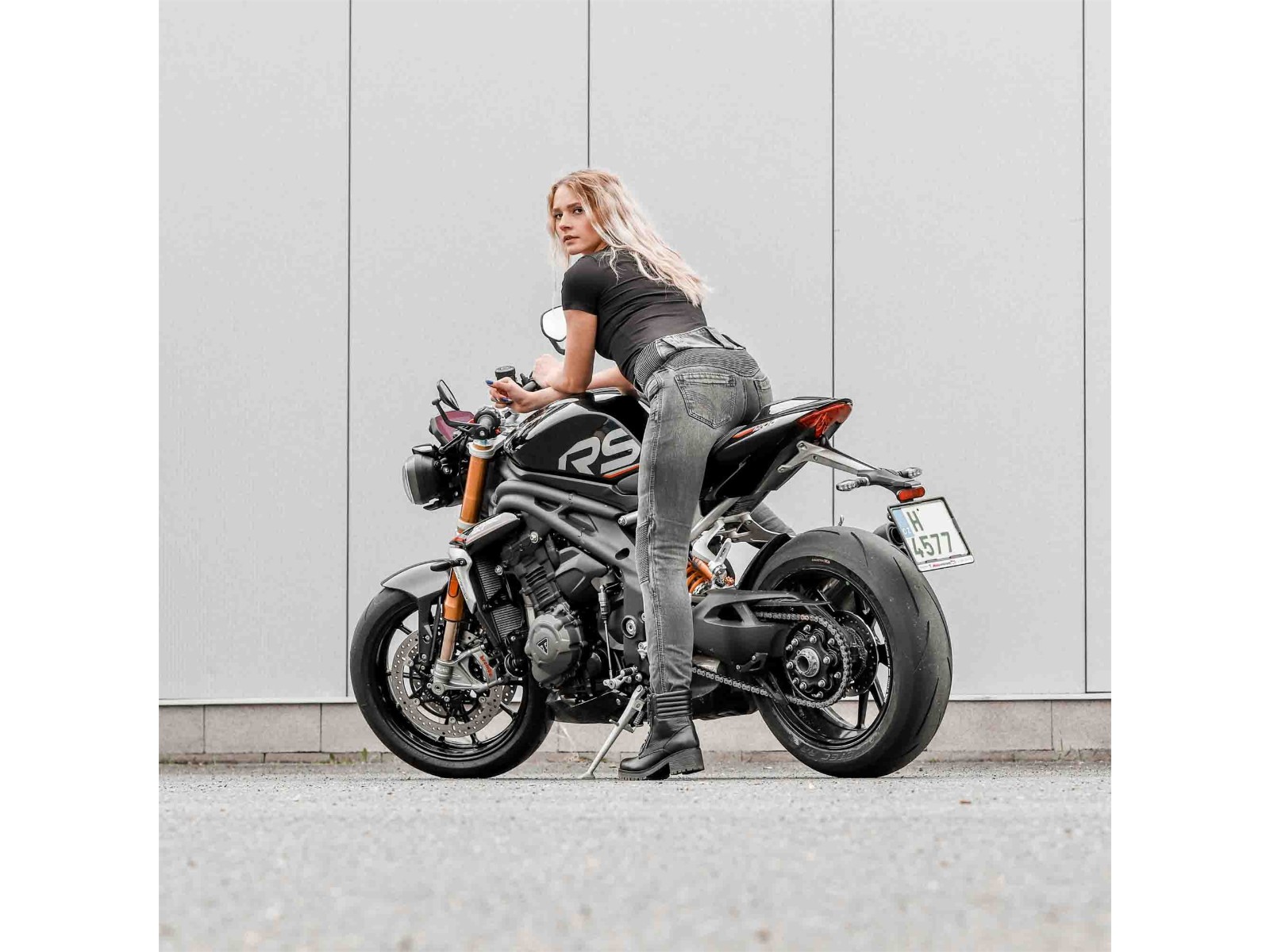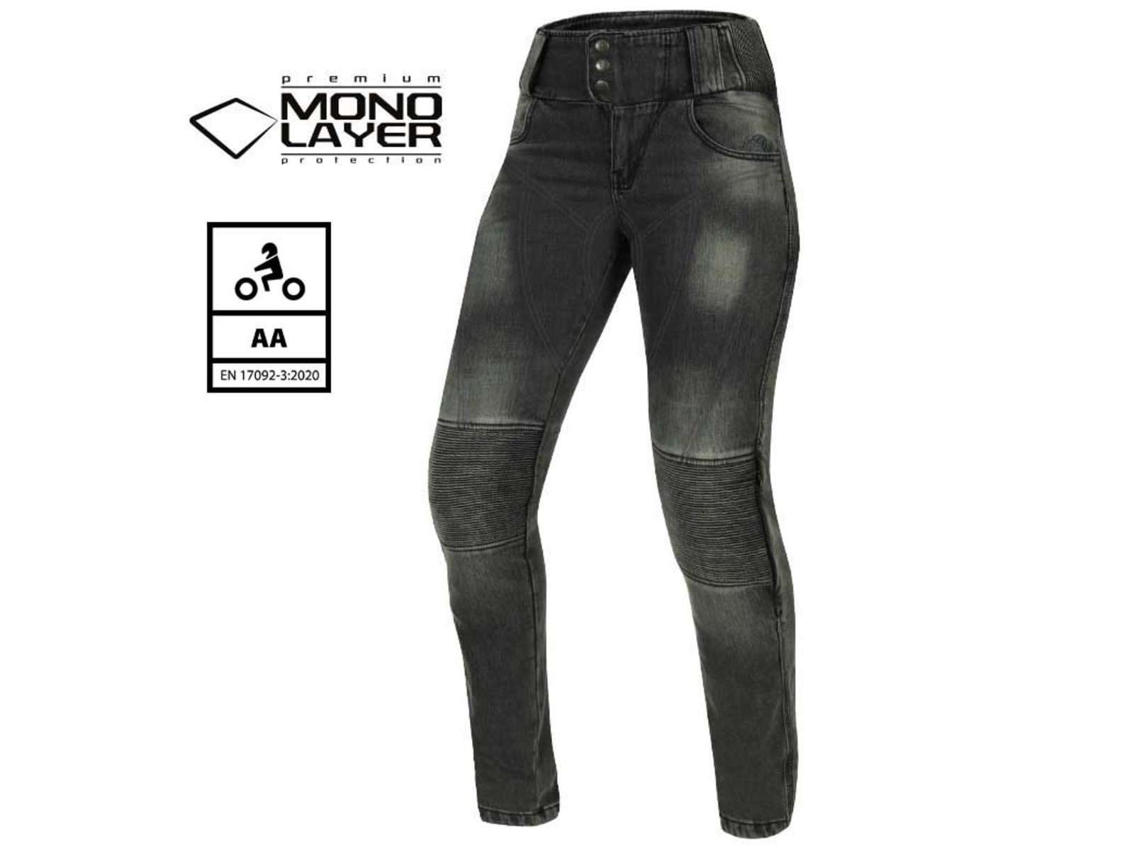 Die Bella Damen-Jeggings überzeugt Motorradfahrerinnen, die Wert auf Komfort, Sicherheit und Stil legen. Ihr besonders leichtes Design in Verbindung mit hoher Atmungsaktivität, Flexibilität sowie ausgezeichneter Abrieb- und Reißfestigkeit macht sie zur perfekten Begleiterin für jede Fahrt. Die innovative Materialzusammensetzung aus Dyneema®, Elastan, Polyester, Nylon und Baumwolle sorgt für außergewöhnliche Haltbarkeit und höchsten Tragekomfort. Dyneema® Denim basiert auf ultrahochmolekularem Polyethylen, das in einem speziellen Spinnverfahren hergestellt wird und dadurch eine herausragende Zugfestigkeit und Schnittresistenz bietet. Die Bella Damen-Jeggings besticht durch eine ergonomische Passform, Gürtelschlaufen für eine individuelle Anpassung und komfortable Stretcheinsätze am Steißbein und Knie, die Bewegungsfreiheit in jeder Fahrposition ermöglichen. Zwei Fronttaschen sowie drei Gesäßtaschen, darunter eine versteckte Gesäßtasche, bieten ausreichend Stauraum für persönliche Gegenstände. Der Zugang zu den Knieprotektoren erfolgt bequem von außen. Für maximale Sicherheit ist die Bella Damen-Jeggings mit TRI-STRETCHER® Denim inklusive Dyneema® ausgestattet und verfügt über Knie- und Hüftprotektoren der CE-Level 2 Kategorie, zertifiziert nach EN 1621-2, die herausnehmbar und im Kniebereich höhenverstellbar sind. Zusätzlich schützt ein integrierter Steißbeinschutz. Dreifachnähte erhöhen die Strapazierfähigkeit und Langlebigkeit der Hose. Das Obermaterial auf der Vorderseite besteht aus TRI-STRETCHER® Denim, einer hochwertigen Mischung aus Dyneema®, Baumwolle, Elastan, Nylon und Polyester. Die Bella Damen-Jeggings kombiniert modernes Design, innovative Materialien und höchste Sicherheitsstandards zu einer stilvollen und funktionalen Motorradjeans für anspruchsvolle Fahrerinnen.