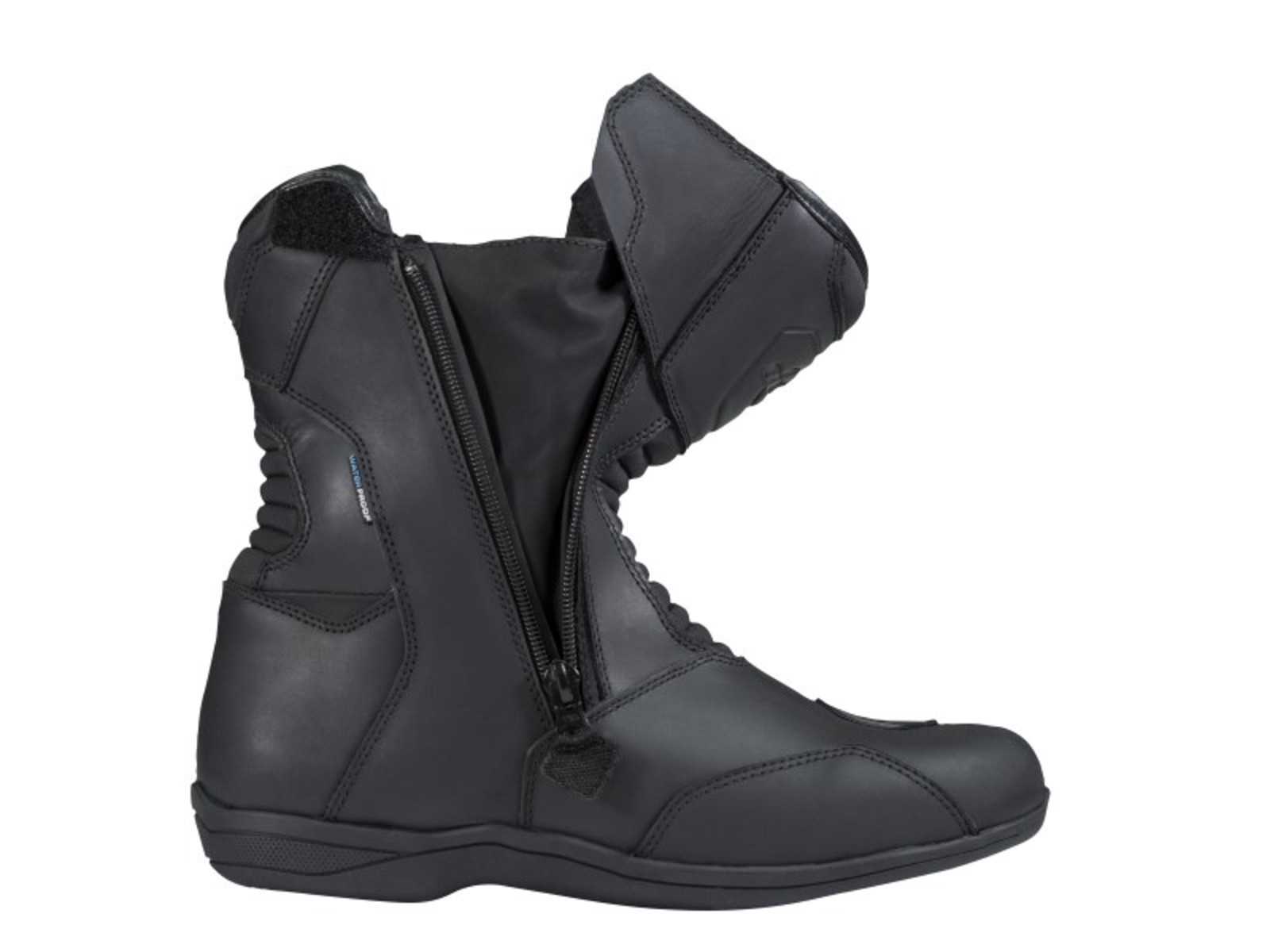 - 2 seitliche Reißverschlüsse mit Lederabdeckung für komfortablen Einstieg,