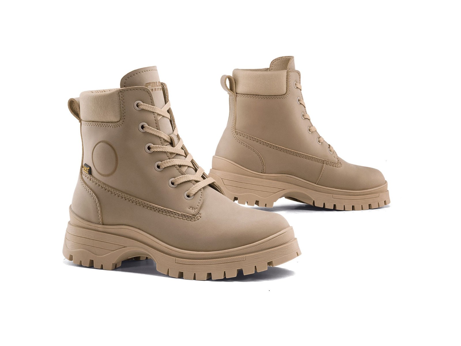 Der Falco Zarah Damen Motorradstiefel in der Farbe schwarz vereint stilvolles Design mit einem hohen Maß an Funktionalität und Sicherheit – perfekt für alle Fahrerinnen, die sowohl auf dem Bike als auch im Alltag Wert auf Komfort und Schutz legen. Gefertigt aus robustem „Micro-Synth“-Obermaterial bietet der Stiefel eine hohe Strapazierfähigkeit und eine angenehme Haptik. Die integrierte High-Tex® Membrane sorgt dafür, dass der Stiefel zuverlässig wasserdicht, winddicht und atmungsaktiv bleibt, was ihn zum idealen Begleiter bei unterschiedlichsten Wetterverhältnissen macht. Im Inneren sorgt ein atmungsaktives Futter für ein angenehmes Fußklima, während das vorgeformte, vibrationsabsorbierende und orthopädische Fußbett den Tragekomfort auch bei längeren Fahrten deutlich erhöht. Für die nötige Sicherheit sind hochwertige D3O®-Protektoren im Knöchelbereich eingearbeitet, ergänzt durch verstärkte Zehen- und Fersenbereiche, die einen zuverlässigen Schutz bei Stößen bieten. Durch die klassische Schnürung lässt sich der Stiefel individuell an den Fuß anpassen und gewährleistet so einen sicheren Halt während der Fahrt. Die griffige Gummisohle sorgt für optimale Bodenhaftung, egal ob beim Absteigen, Rangieren oder auf rutschigen Untergründen. Mit der Zertifizierung nach EN 13634:2017 erfüllt der Falco Zarah zudem alle aktuellen Sicherheitsstandards für Motorrad-Schutzbekleidung und bietet damit ein rundum sicheres und komfortables Fahrerlebnis.