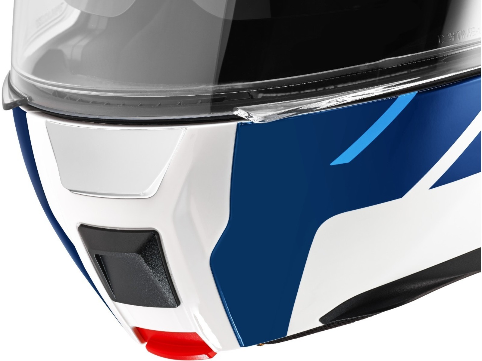 - reflektierende Bereiche auf dem Windabweiser, Nackenpolster, Visierabdichtung und Helmsticker für eine verbesserte Sichtbarkeit während des Fahrens mit offenem und geschlossenem Kinnteil