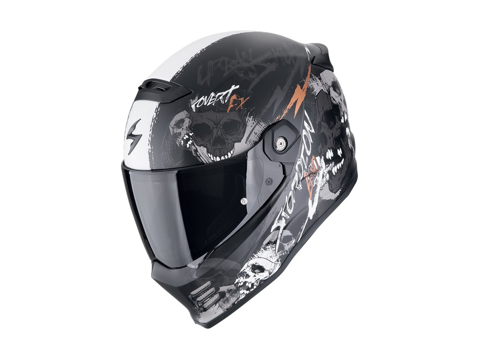 Der Entwickler des originalen, knallharten Covert/Combat-Motorradhelms hat jetzt eine Vollgesichtsversion entwickelt, den Covert FX! Der Covert FX weist den gleichen kantigen Stil und die gleiche Funktion auf, die man von der ScorpionEXO® Covert/Combat-Serie erwartet. So stilvoll die Details auch sein mögen, sie haben wichtige Funktionen. Jeder Helm wird in sorgfältiger Handarbeit aus den neuesten Glas-, Aramid- und Polyresin-Fasern gefertigt, die für überragende Festigkeit und extremes Leichtgewicht sorgen. Die flache Helmschale wurde aerodynamisch auf das Motorradfahren abgestimmt und minimiert sowohl den Auftrieb als auch die Turbulenzen für ein ruhigeres, leiseres und stabileres Fahrverhalten. Integrierte Lautsprechertaschen erleichtern die Installation Ihres Lieblings-Bluetooth®-Kommunikationsgeräts, während das KwikWick 3-Komfortfutter mit seinem feuchtigkeitsableitenden Material dafür sorgt, dass Sie während der Fahrt kühl, trocken und komfortabel bleiben. Der ScorpionEXO® setztweiterhin den neuen Standard, wenn es um den Wert eines Motorradhelms geht, indem er ein kostenloses Dark Smoke Shield sowie ein Clear Shield gleich mitliefert. Wenn Sie auf der Suche nach einem stylischen und funktionellen Motorradhelm sind, der sich sowohl für den Stadtverkehr als auch für Langstreckentouren eignet, ist der Covert FX genau das Richtige für Sie.