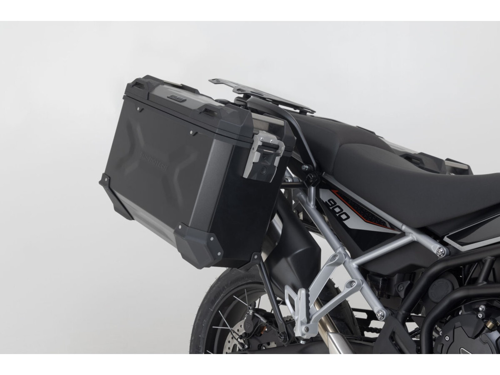 Das Adventure Set TRAX ADV enthält die zur Triumph Tiger 900 GT / Rally Pro passenden PRO-Seitenträger und das passende ADVENTURE-RACK. Die Seitenträger und der Gepäckträger werden an den modellspezifischen Anbaupunkten befestigt und bieten sicheren Halt für die schwarzen TRAX ADV Alukoffer.
