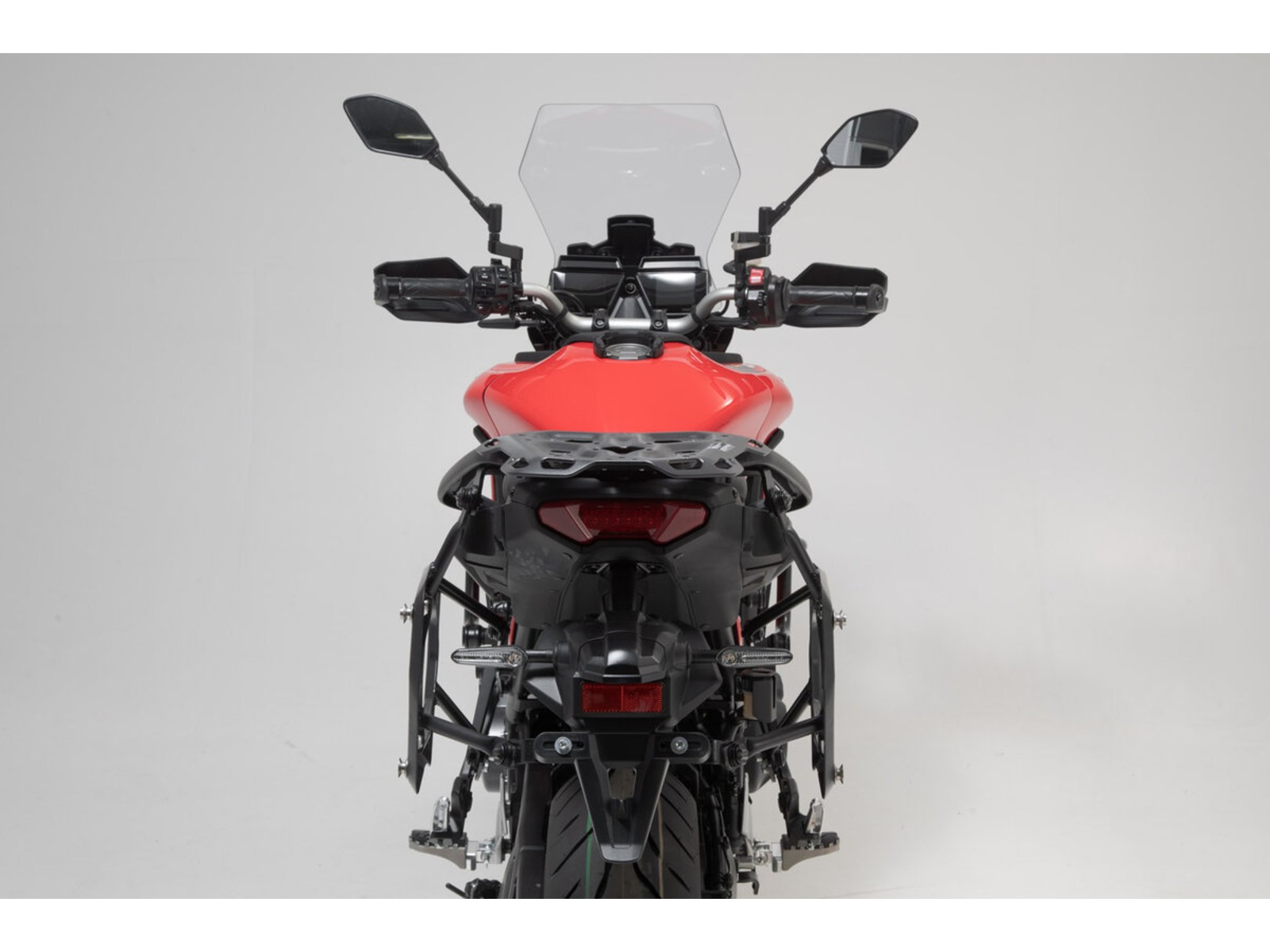 Das Adventure Set TRAX ADV enthält die zur Yamaha Tracer 9 passenden PRO-Seitenträger und das passende ADVENTURE-RACK. Die Seitenträger und der Gepäckträger werden an den modellspezifischen Anbaupunkten befestigt und bieten sicheren Halt für die schwarzen TRAX ADV Alukoffer.